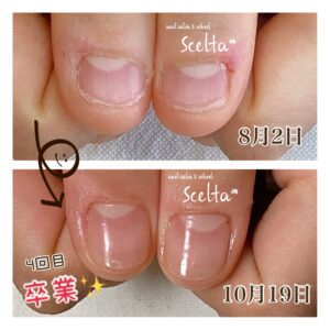 手の深爪で通われてるお客様が、ある程度深爪が改善されて来た頃に
